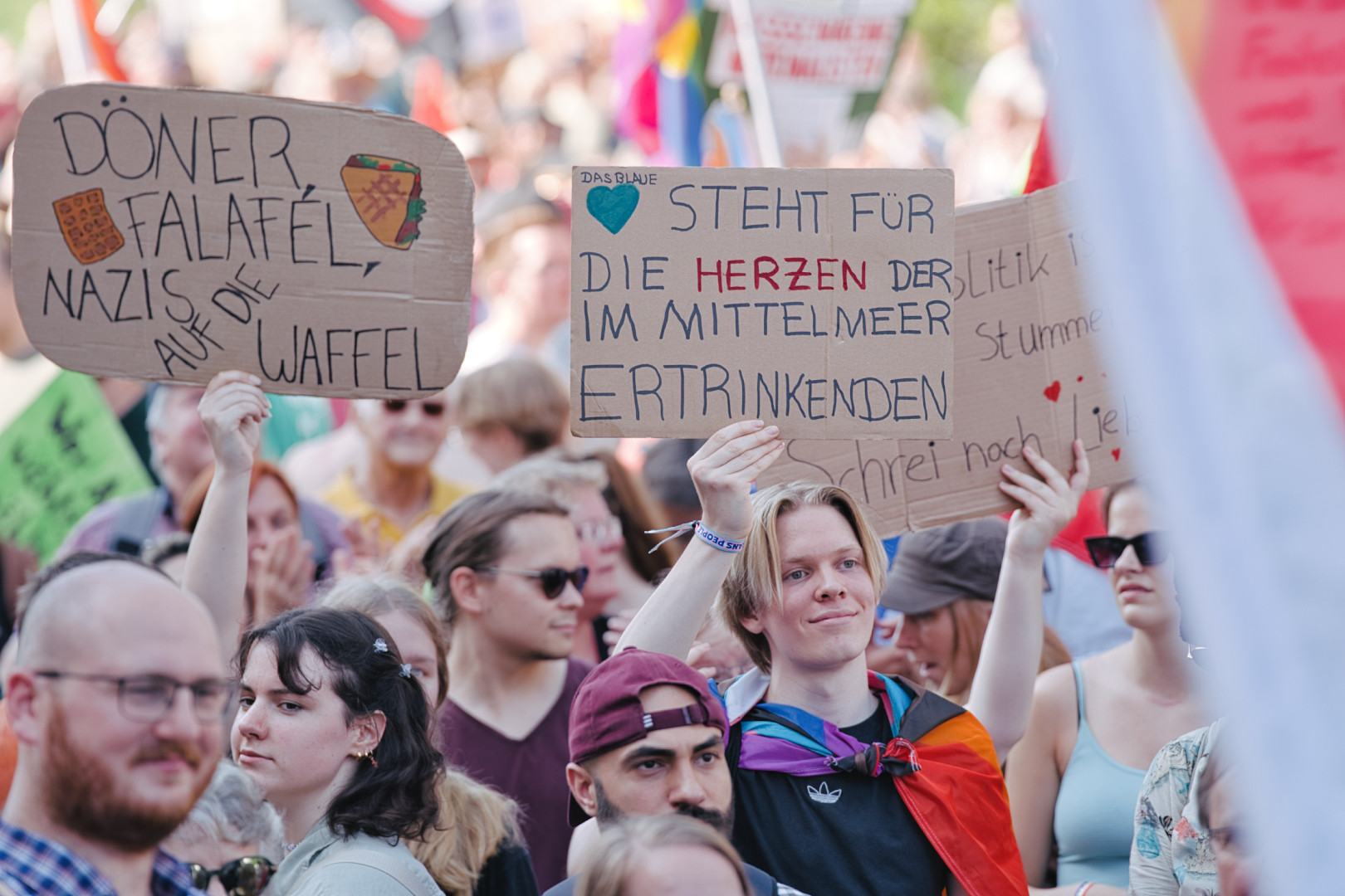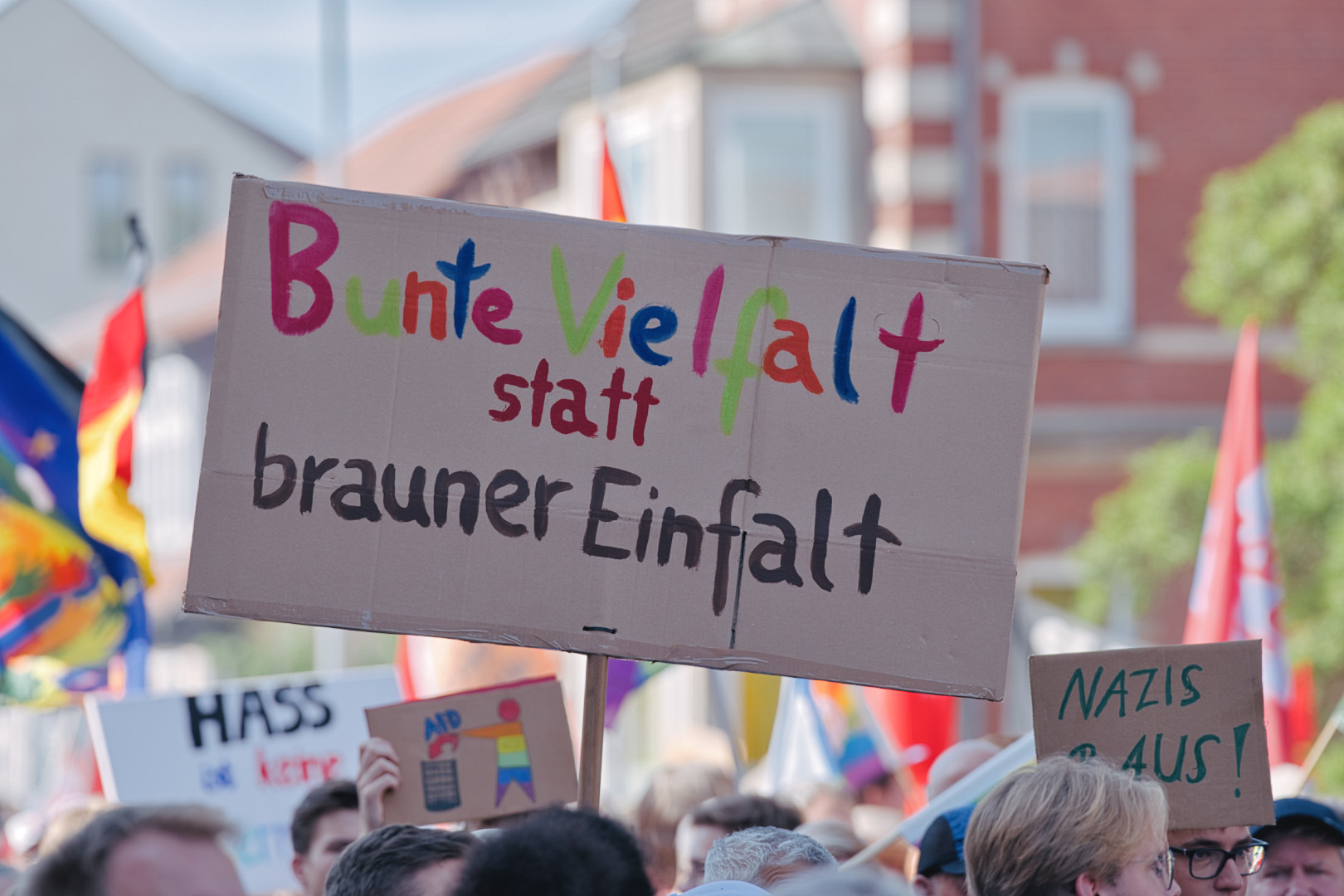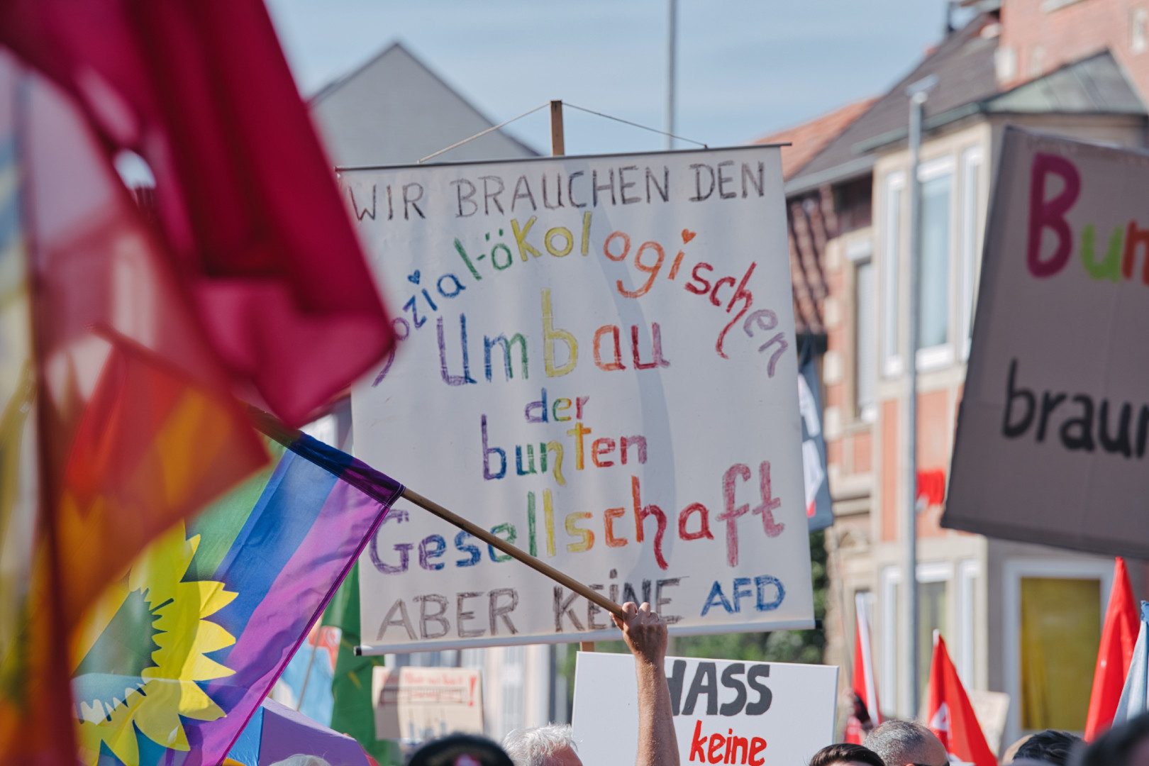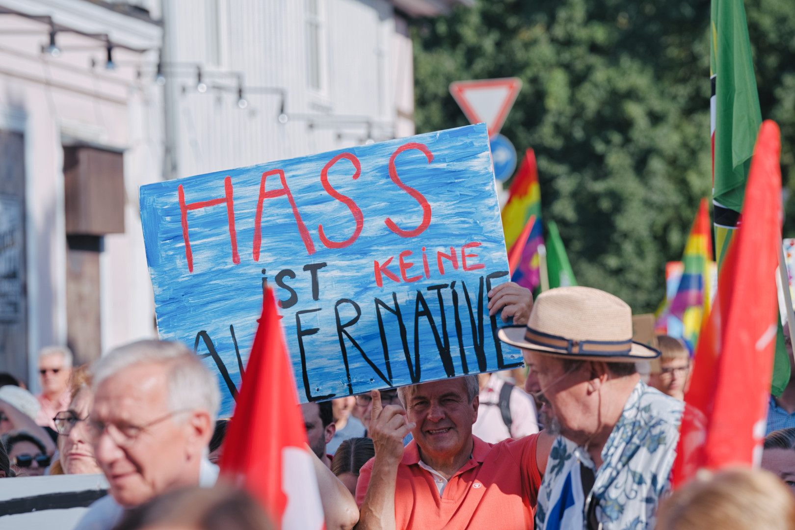 Als im Kern faschistische Partei verbreiten die Repräsentanten der AfD anhaltend und offen nationalistische und rassistische Hetze, Islamfeindlichkeit und Antifeminismus, Antisemitismus und Antiziganismus sowie andere Formen gruppenbezogener Menschenfeindlichkeit. Sie relativiert die Verbrechen des Nationalsozialismus und deutet die Erinnerungskultur um. Sie verleumden demokratische Vereinigungen ebenso wie soziale Einrichtungen. Sie leugnen den menschengemachten Klimawandel und führen einen Kampf gegen die Freiheit von Wissenschaft, Kultur und Medien. Sie spaltet die Gesellschaft, bekämpft die Gleichberechtigung, befeuert Hass und Hetze.