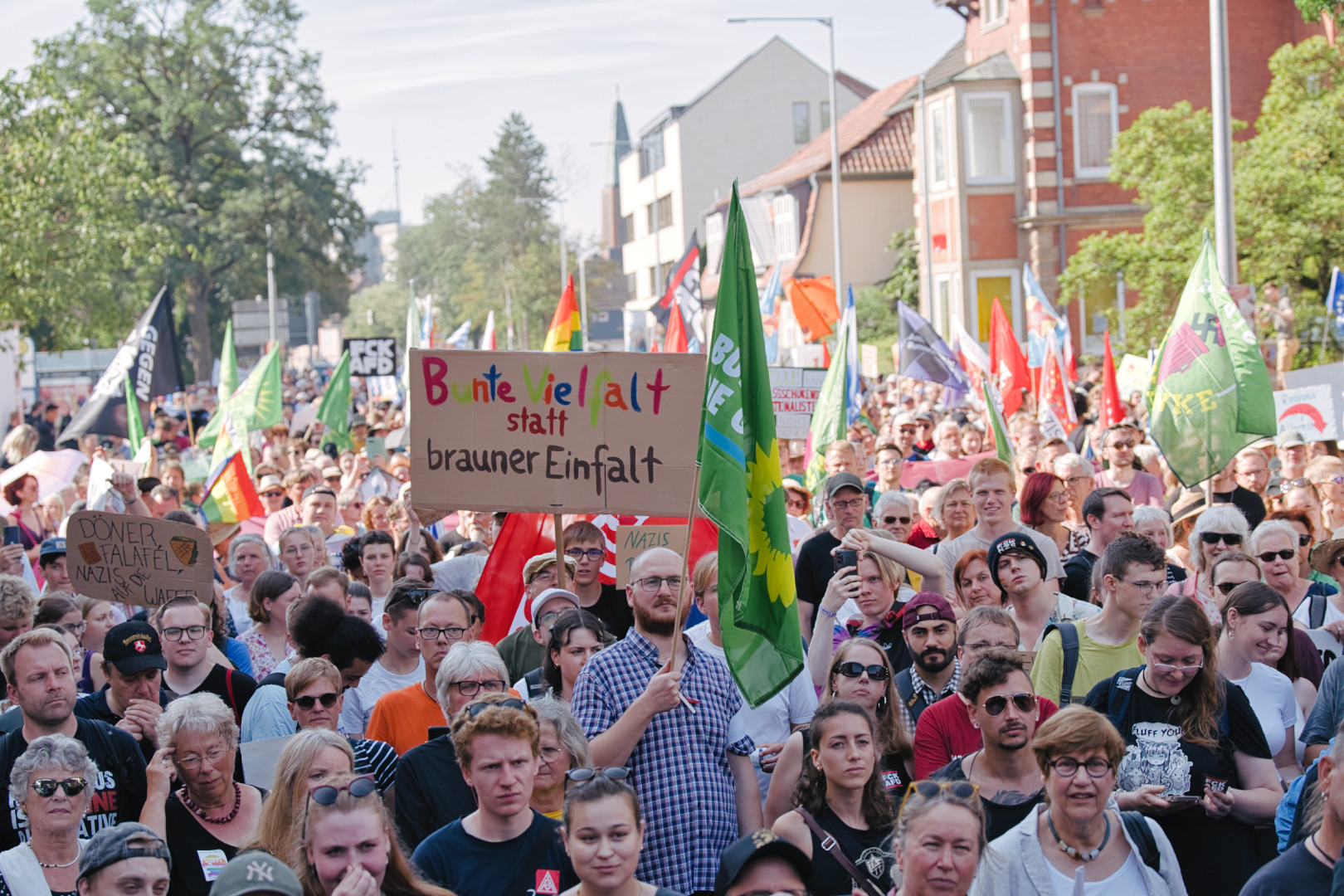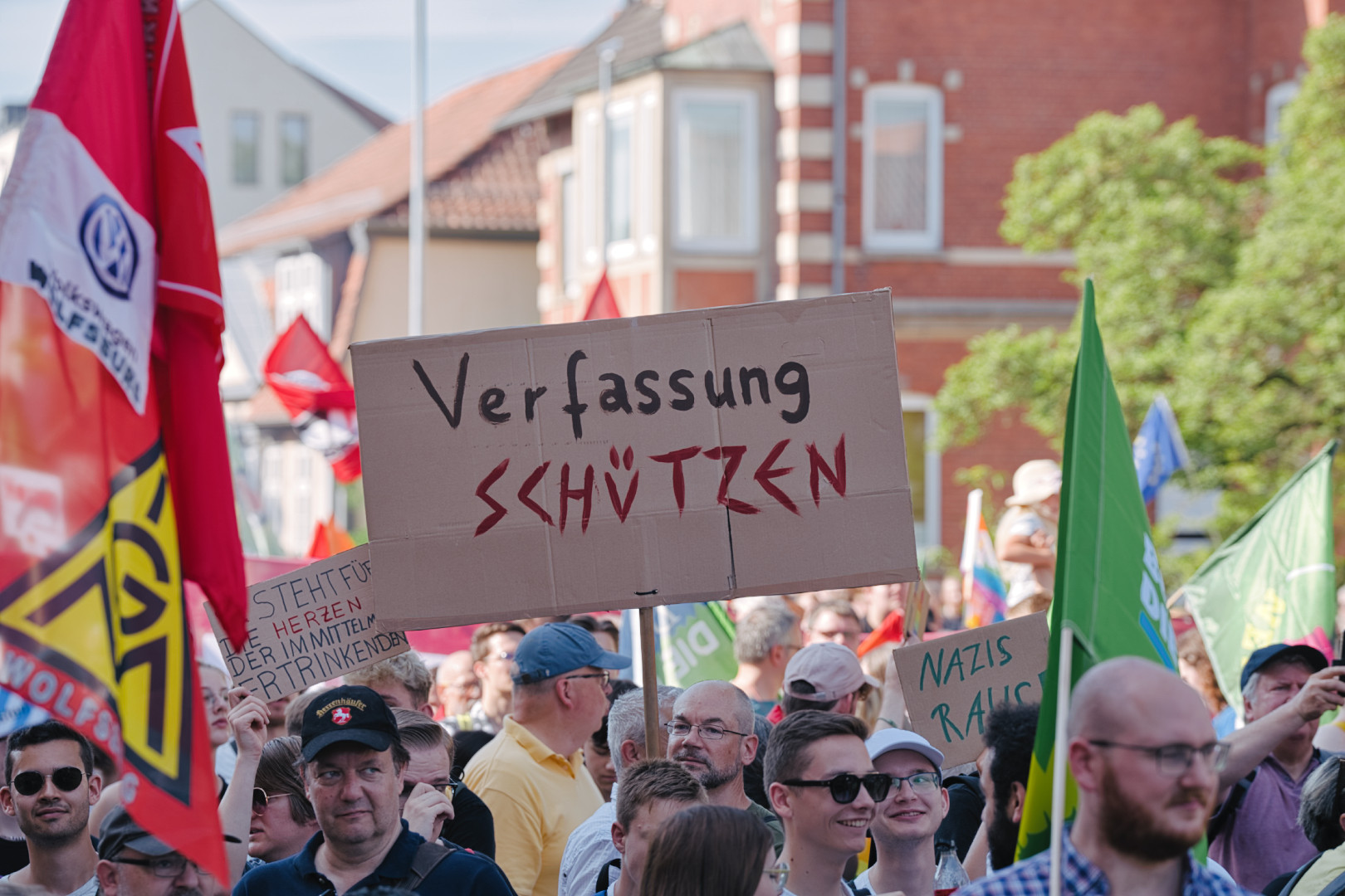 Thorsten Gröger, Hauptredner auf der Gegendemonstration zum AfD-Parteitag und Bezirksleiter der IG Metall in Niedersachsen und Sachsen-Anhalt, sagt: „Die AfD steht mit ihren Positionen diametral den Grundwerten der Gewerkschaftsbewegung gegenüber. Wir wollen ein vielfältiges, solidarisches, sozial gerechtes Europa. Eine inklusive Gesellschaft, in der alle – unabhängig von Glaube, Geschlecht, sexueller Orientierung, Herkunft und sozialem Status – gleichberechtigt, frei und ohne Angst leben können. Wir unterstützen die Aufnahme und gesellschaftliche Teilhabe von Menschen, die vor Verfolgung, Hunger und Not flüchten. 90 Jahre nach Zerschlagung der freien Gewerkschaften durch die Nationalsozialisten ist es unsere historisch gewachsene Verantwortung vor dem Gespenst des Nationalismus zu warnen und uns den Demokratiefeinden im Land entgegenzustellen!“